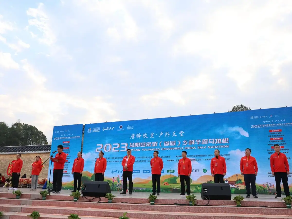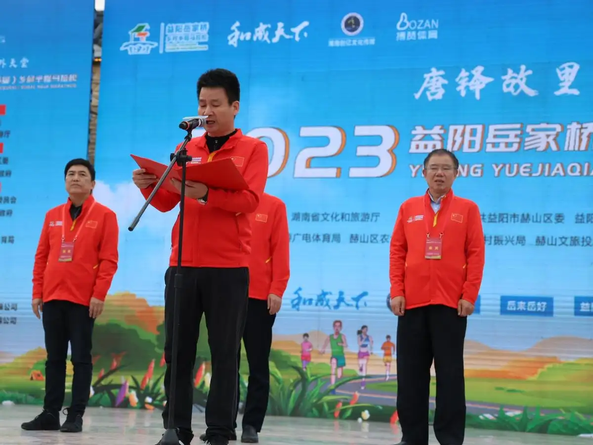 11月5日,“唐铎故里户外天堂”2023益阳岳家桥(首届)乡村半程马拉松在益阳市赫山区岳家桥镇欢乐开跑,益阳市赫山区岳家桥镇党委书记陈大如致欢迎辞,益阳市政协党组成员、副主席谢梅成,益阳市文化旅游广电体育局党组成员、副局长陈腊春,赫山区人大常委会党组书记、主任胡佐颂,赫山区委常委、区委办主任陈维民,赫山区委常委、宣传部长高志荣,赫山区委常委、区纪委书记、区监委主任胡鑫,赫山区人大常委会副主任贾东辉,赫山区人民政府党组成员、副区长陈哲杰,赫山区人民政府党组成员、副区长雷鹏,赫山区政协副主席金辉,岳家桥镇党委副书记、镇长庄璆等出席起跑仪式并鸣枪发令。