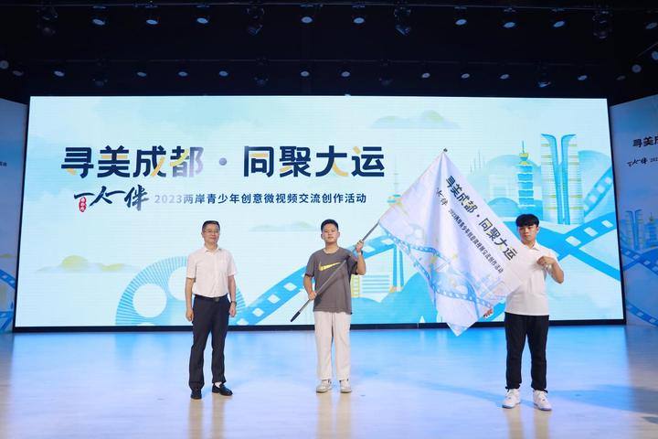 最后,成都市人民政府台湾事务办公室主任傅军现场为海峡两岸学生代表授旗,代表着寻美成都·同聚大运“一人一伴·微拍秀”2023两岸青少年创意微视频交流创作活动正式启动,海峡两岸青少年将带着各自的寻美主题,开启这趟特别的成都之旅。