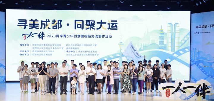 8月13日下午,“寻美成都·同聚大运‘一人一伴·微拍秀’2023两岸青少年创意微视频交流创作活动”开营仪式在成都举行。活动由国务院台湾事务办公室新闻局、四川省人民政府台湾事务办公室、成都市人民政府台湾事务办公室、成都市教育局指导,成都海峡两岸交流协会主办,成都商报·红星教育承办,成都市武侯区教育局、北京第二外国语学院成都附属中学协办。